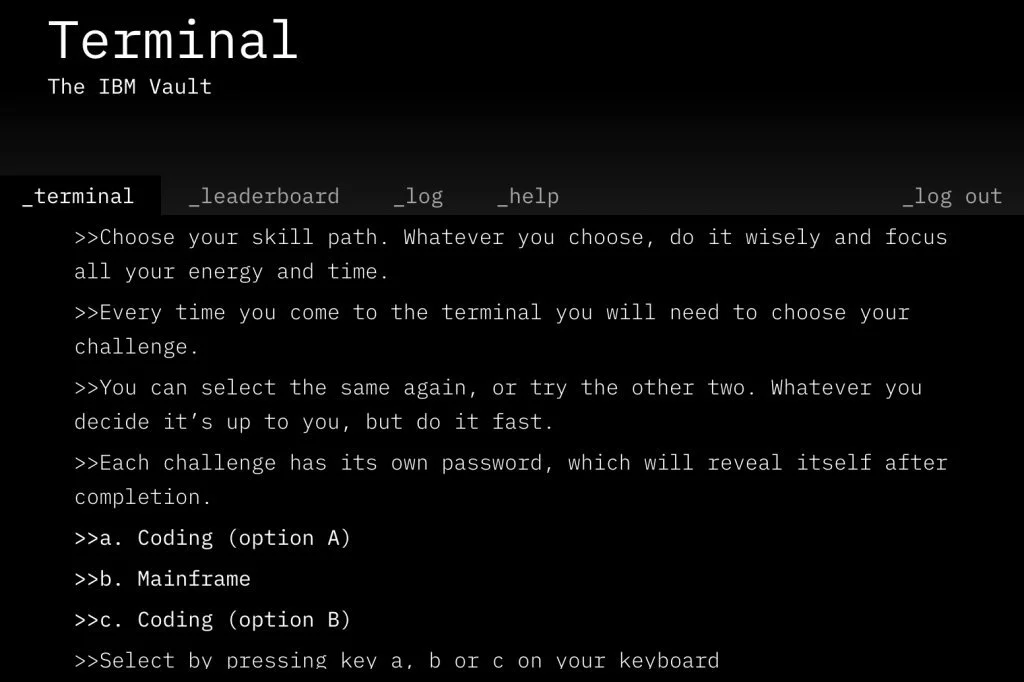 Uncubed Studios worked hand-in-hand with IBM on a cybersecurity competition where the top 75 participants would be flown out to IBM’s research facility in Cambridge, Massachusetts. The Vault campaign utilized code, images, videos, websites, and cryptographic puzzles to guide participants on an intellectual and technical treasure hunt. This campaign helped IBM win a Technology Excellence Award with the National Association of Colleges and Employers (NACE).